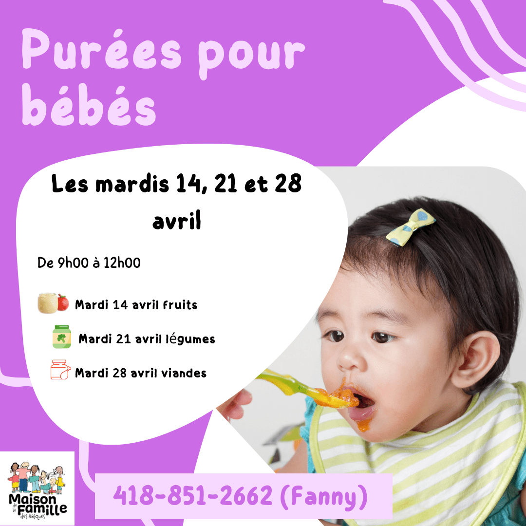 Viens participer à nos ateliers de purées pour bébés!
